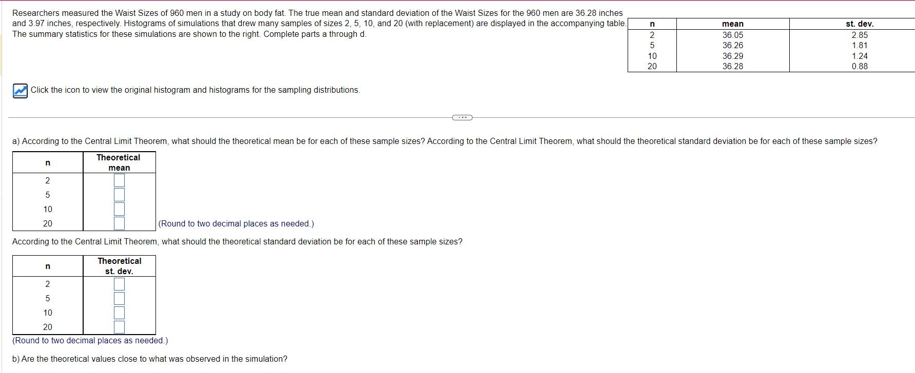 Solved Researchers measured the Waist Sizes of 960 men in a